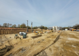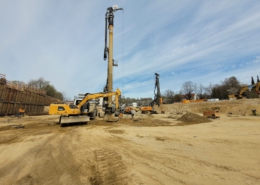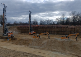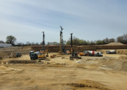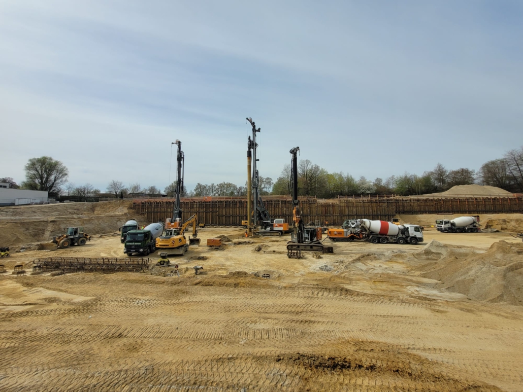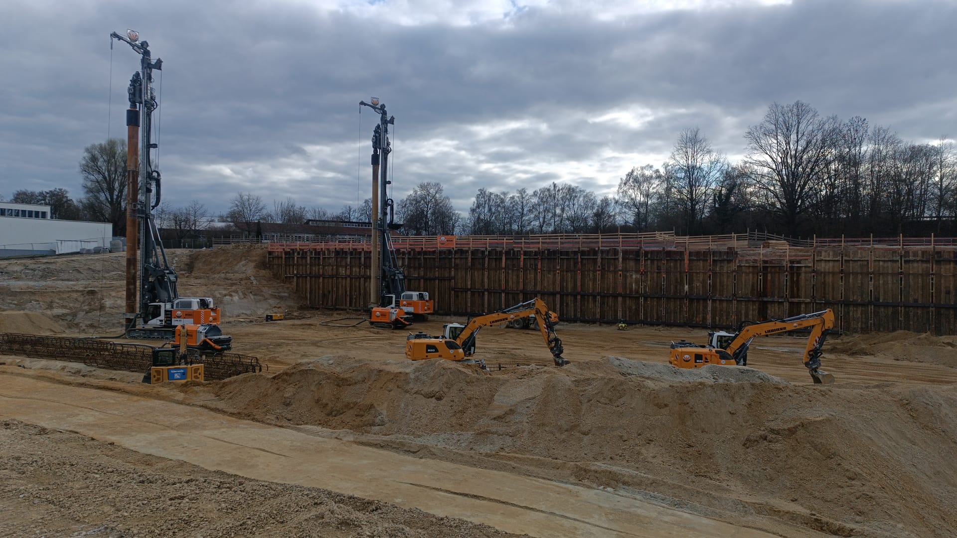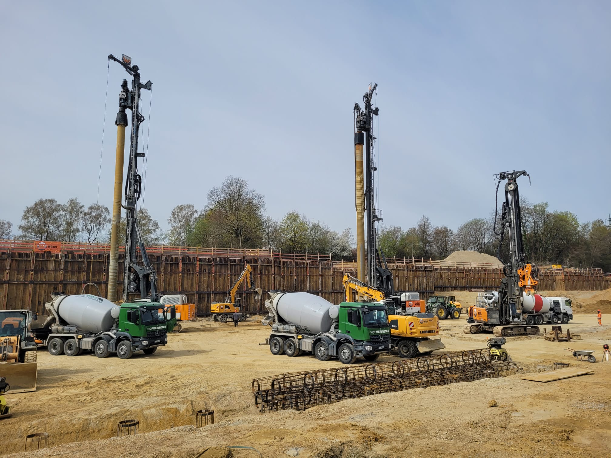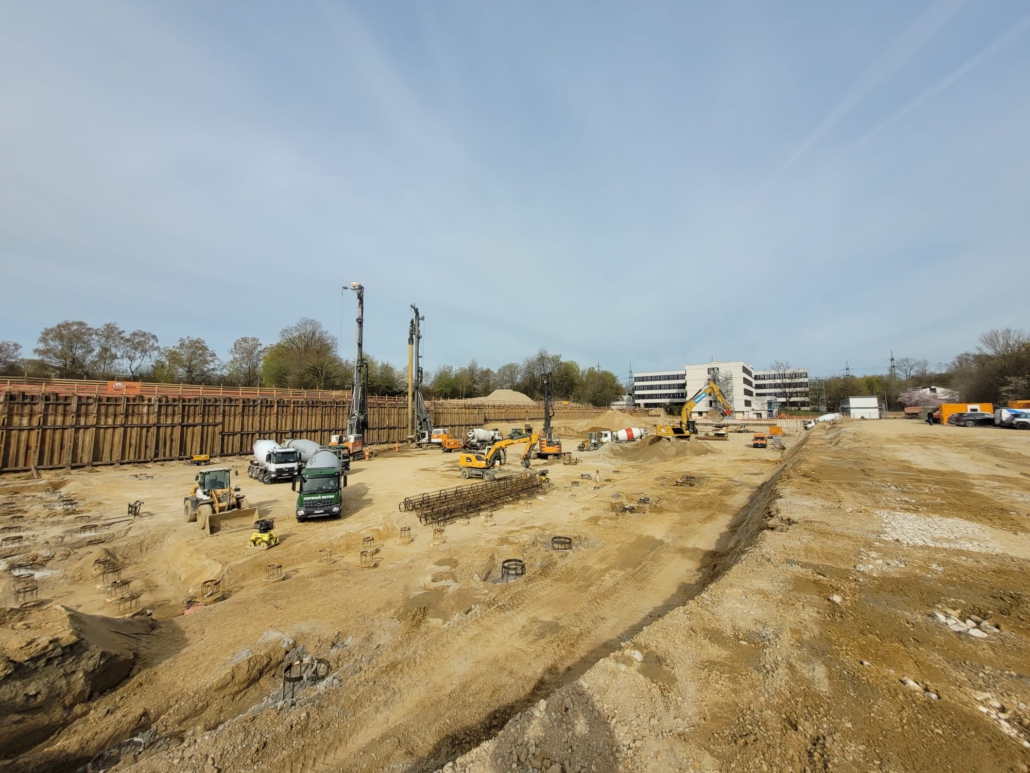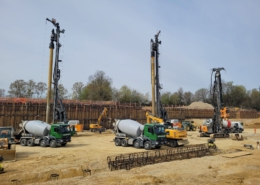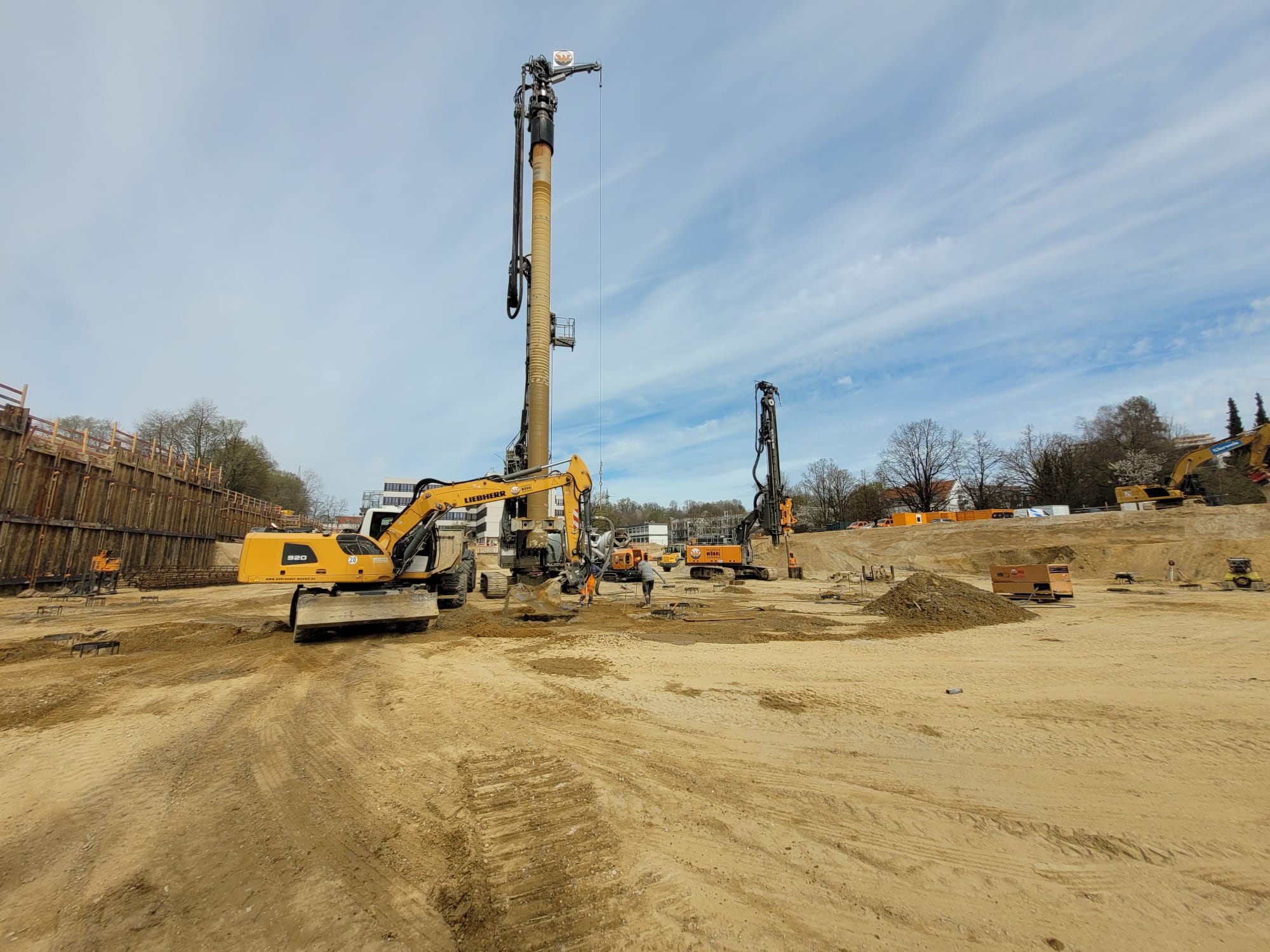 Neben den Verbau- und Erdarbeiten stellen wir die Gründung, welche aus etwa 730 Bohrpfählen besteht, her.